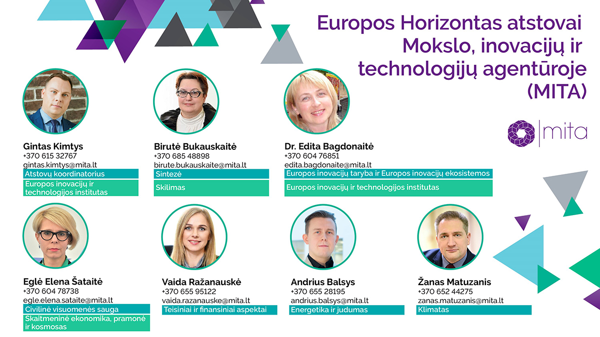 Dėl detalesnės informacijos apie programą „Europos horizontas“ verslo ir mokslo institucijos gali kreiptis į programos nacionalinius kontaktinius asmenis (angl. NCP – national contact points) pagal tematines sritis.