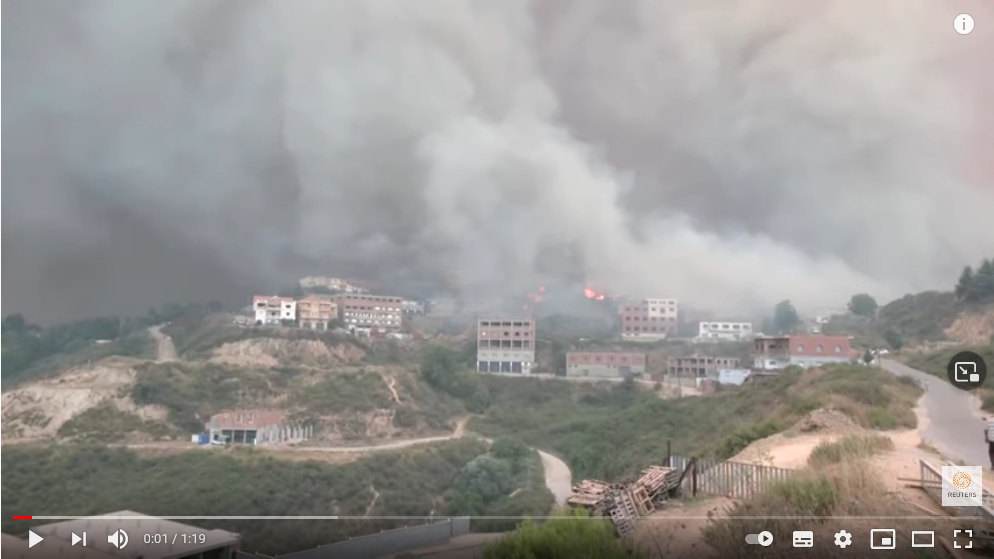 Socialiniuose tinkluose paskelbtose nuotraukose matyti milžiniškos liepsnos ir nuo jų kylantys dūmų debesys, užtraukę dangų virš ant miškingų kalvų įsikūrusių kaimų Kabilijos regione, į rytus nuo sostinės Alžyro.