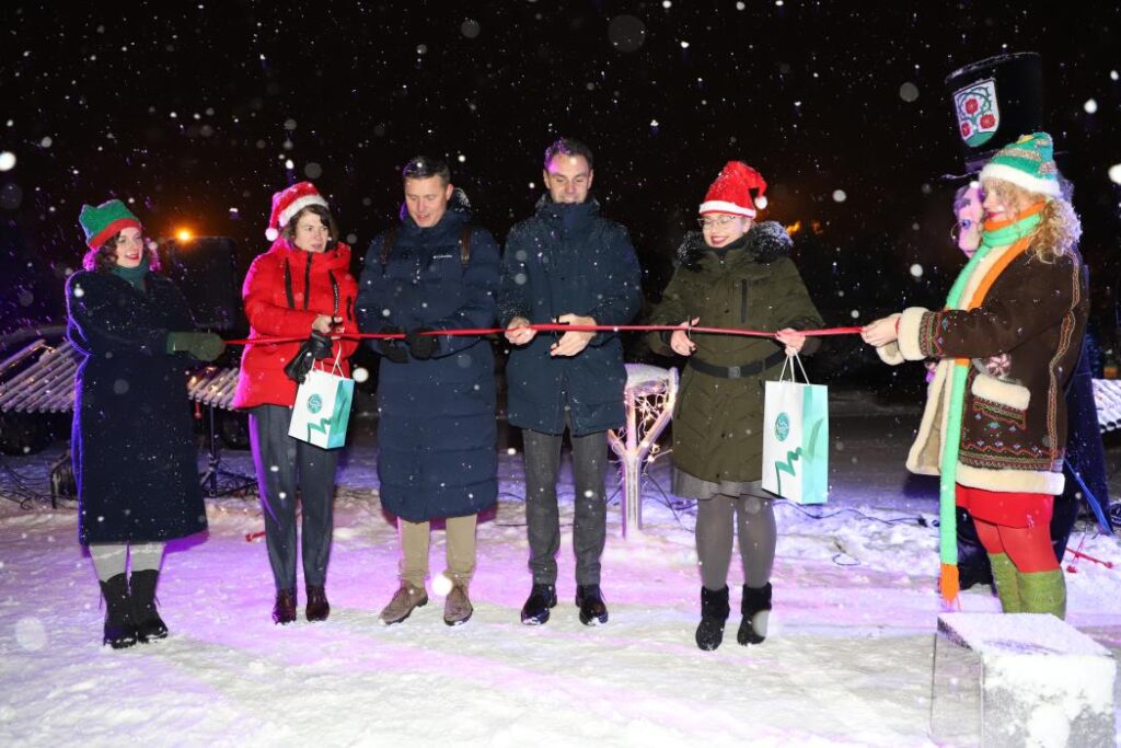 Kalėdinės nuotaikos atkeliavo ir į Domeikavą – atidarytas pirmasis muzikinių instrumentų parkas Kauno rajone bei įžiebta seniūnijos žaliaskarė.