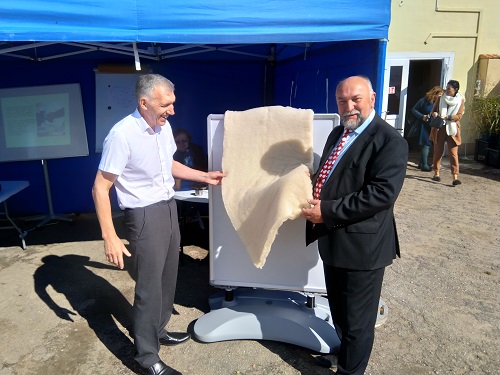 Ar žinojote, kad avių vilna gali būti naudojama ne tik kojinėms megzti ar antklodėms siūti, bet ir pastatams apšiltinti? Lietuvos socialinių mokslų centro direktoriaus pavaduotojas Virgilijus Skulskis parodos lankytojams pristatė Lietuvos socialinių mokslų centro ir Vilniaus Gedimino technikos universiteto komandos rezultatą – termoizoliacines plokštes iš šiurkščiavilnių avių vilnos.