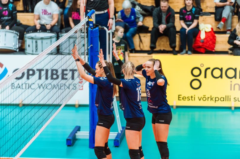 Baltijos lygos čempionės titulą ginanti „Kauno-VDU“ pusfinalyje po atkaklios ir permainingos kovos 3-2 (26:24, 23:25, 24:26, 26:24, 15:10) palaužė Talino „TalTech-Tradehouse“ (Estija) klubo pasipriešinimą.