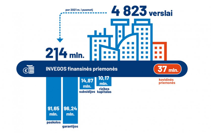 Nacionalinė plėtros įstaiga „Investicijų ir verslo garantijos“ (INVEGA) per pirmąjį 2021 m. pusmetį 4823 šalies įmonėms suteikė beveik 214 mln. eurų finansavimą. Apie penktadalis šių investicijų buvo skirta padėti verslui kovoje su pandemijos padariniais – kovidinėmis INVEGOS priemonėmis pasinaudojo 1085 įmonių, kurioms suteikta daugiau kaip 37 mln. eurų.