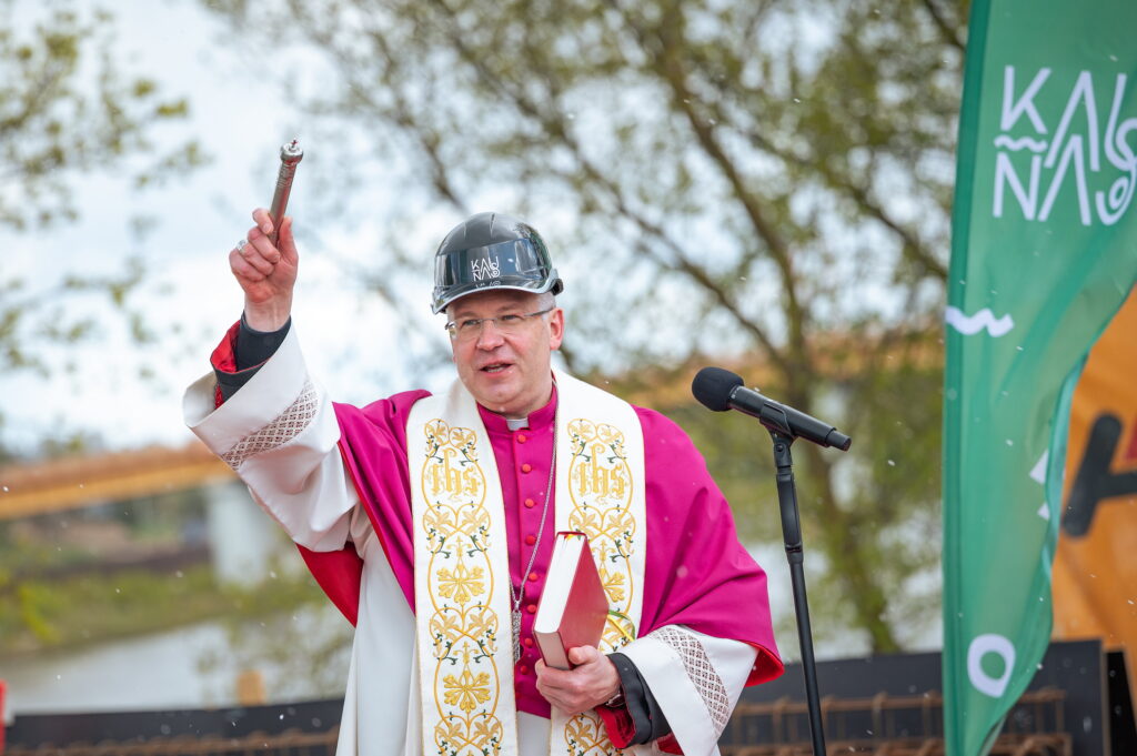 Duok Dieve, kad mūsų miestas būtų toliau taip puoselėjamas, gražinamas ir prižiūrimas, kaip tai vyksta jau daugiau nei dešimtmetį“, – ceremonijoje kalbėjo tiltą statančios bendrovės „Autokausta“ vadovas Juozas Kriaučiūnas