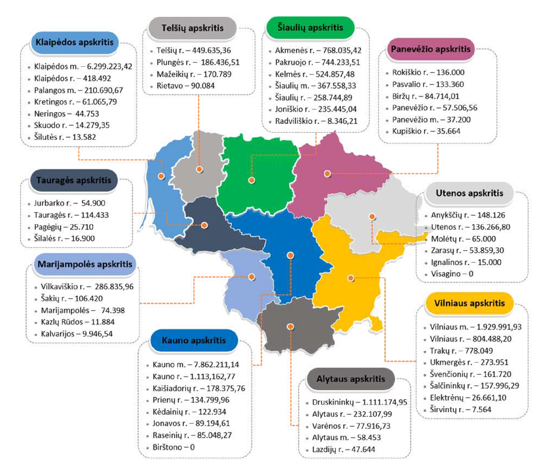 2024 metais bendras visų Lietuvos savivaldybių finansavimas siekė 27,7 mln. eurų, tuo tarpu vien Kauno dalis sudaro beveik 7,9 mln, eurų arba apie 28 proc. visos sumos. Vertinant procentinę dalį nuo viso biudžeto asignavimų, Kaunas taip pat pateko į savivaldybių penketuką, paveldui skiriančių daugiau kaip 1 procentą.