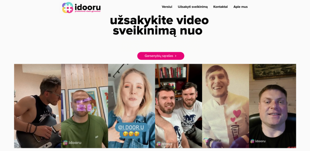 Sausį gimusi idėja jau balandį tapo rinkai pasiūlytu produktu: per „Idooru“ platformą norintieji gali užsisakyti sveikinimus nuo atlikėjų, aktorių, sportininkų, visiems žinomų televizijos veidų, rašytojų ir kitų įkvepiančių Lietuvos asmenybių. Kaip sako patys startuolio kūrėjai, jų atveju karantino laikas buvo dėkingas ir prisidėjo tiek prie idėjos atsiradimo, tiek prie vertės sukūrimo: žmonės buvo pasiilgę kultūros ir sporto renginių, o garsenybėms tai tapo puikia platforma bendrauti su savo fanais bei auginti sumažėjusias gaunamas pajamas.