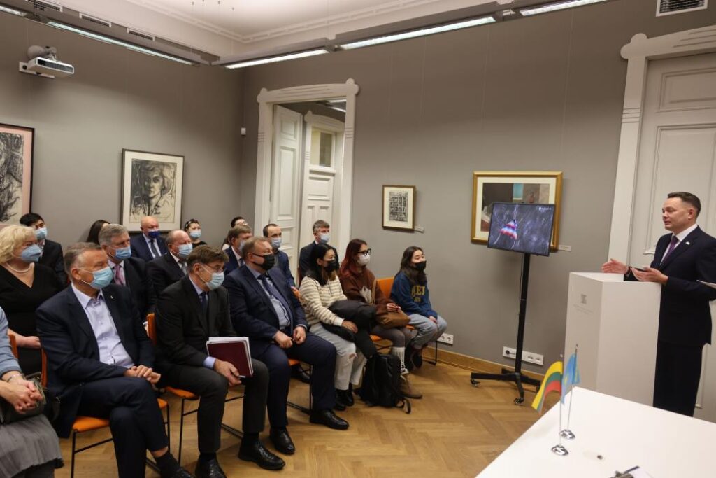 Parodos atidaryme dalyvavo VDU rektorius Juozas Augutis ir LSMU rektorius Rimantas Benetis, būrelis šiuose universitetuose besimokančių kazachų.