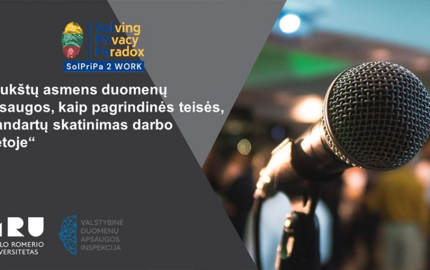 Valstybinė duomenų apsaugos inspekcija ir Mykolo Romerio universitetas kviečia internetu stebėti „SolPriPa 2 WORK“ projekto „Sprendžiant privatumo paradoksą 2: aukštų asmens duomenų apsaugos, kaip pagrindinės teisės, standartų skatinimas darbo vietoje“ atidarymo konferenciją. Tiesioginės transliacijos nuoroda: https://youtu.be/qHwjepKleaI