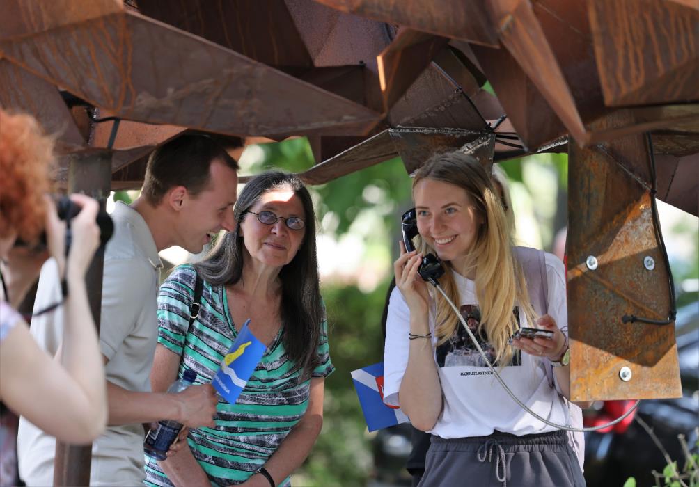 Kadaise stovėjusios telefono būdelės vietoje iškilęs meninis objektas iš karto sudomino būrį smalsuolių.