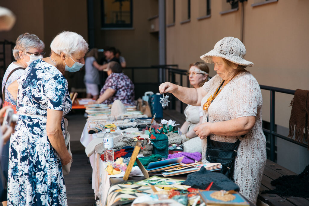 Renginyje savo darbus iš antrinių tekstilės žaliavų pristatė ir patys senjorai – Stasio Lozoraičio senjorų akademijos Amatininkystės fakulteto nėrėjos, mezgėjos ir siuvėjos. Moterys kūriniams iš medžiagų skiaučių ar senų siūlų skiria nemažai laiko, todėl džiaugėsi galėdamos pristatyti skiautinių, nėrinių, mezginių ekspoziciją, kurioje buvo galima išvysti šluosčių, servetėlių, žaislų bei kitų įvairių suvenyrų, kurių dalis puošta ir tautiniais ornamentais.