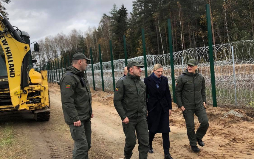 Ministrė taip pat apsilankė Druskininkų užkardos ruože, kur  pasienyje su Baltarusija tiesiamas fizinis barjeras. „Prieš mus vykdomas hibridinis karas ir Lietuva turi gintis įvairiomis priemonėmis ir viena iš tų rimtų priemonių yra sieną. Mes matome rimtą fizinį barjerą, kuris mums padės apsisaugoti. 30 metų mes neturėjome ryžto, politinės valios, šiandien ta valia yra ir tai yra istorinis momentas realizuojamas tikrais veiksmais“, – teigia vidaus reikalų ministrė.  Iš kitų metų biudžeto siūloma skirti 102,8 mln. eurų fiziniam barjerui Lietuvos pasienyje su Baltarusija įrengti – šios lėšos suplanuotos iš Valstybės rezervo fondo ir įtrauktos į Finansų ministerijos asignavimus. Europos Sąjungos (ES) išorės sieną saugantį barjerą numatoma pastatyti per metus. Projektą įgyvendins valstybės įmonės „EPSO-G“. Maždaug 100 kilometro ilgio fizinio barjero pirmojo etapo įrengimo darbus prie sienos su Baltarusija „EPSO-G“ grupės įmonė „Tetas“ pradėjo rugsėjo mėnesio pabaigoje. Pagal VSAT techninius reikalavimus gaminamus tvoros segmentus „Tetui“ tieks Lenkijos ir Nyderlandų gamintojai. Pirmojo etapo darbus planuojama užbaigti iki balandžio pabaigos.