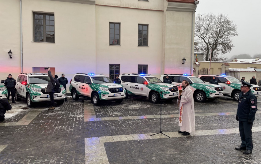 Automobilius pašventino Lietuvos policijos kapelionas Algirdas Toliatas, jie perduoti šalies policijos įstaigoms.