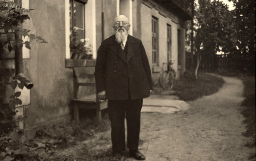 Fotografijoje – Martynas Jankus prie spaustuvės Bitėnuose pastato 1938 m. Pagėgių savivaldybės Martyno Jankaus muziejaus nuotrauka