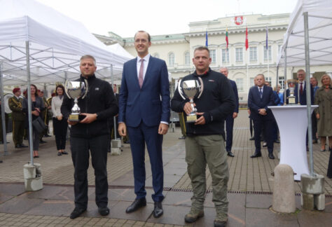 2021 08 29 Sveikindamas ralio „Aplink Lietuvą 2021“ nugalėtojus, šiandien iškilmingoje ralio finišo ceremonijoje susisiekimo ministras Marius Skuodis ministro taures įteikė šio ralio standartinių istorinių…