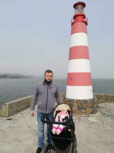 Labiausiai šeimai įsiminė pirmoji kelionė, į kurią leidosi su 6 mėn. mažyle. „Labai gerai prisimenu, kaip vyras siaurais laipteliais su dukrele ant rankų kilo į Raseinių cerkvės bokštą“.
